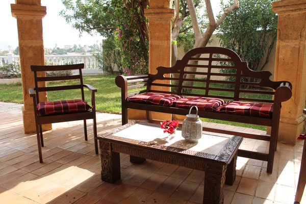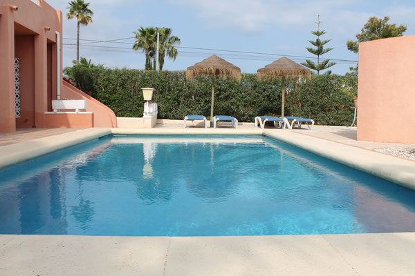 Im Garten können Sie unseren 8 x 4 m Pool genießen und anschließend auf der Sonnenterrasse bequem entspannen.